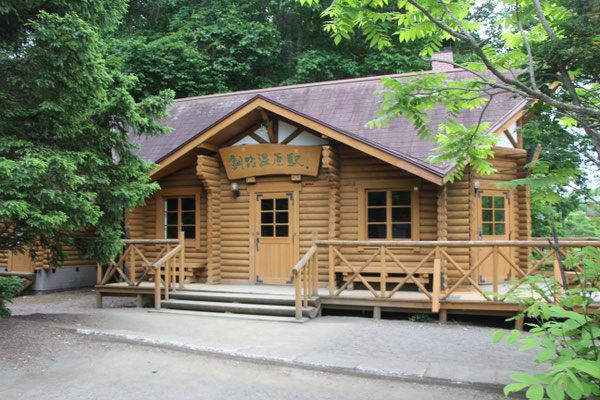 釧路湿原駅。可愛らしい木造の駅舎である。