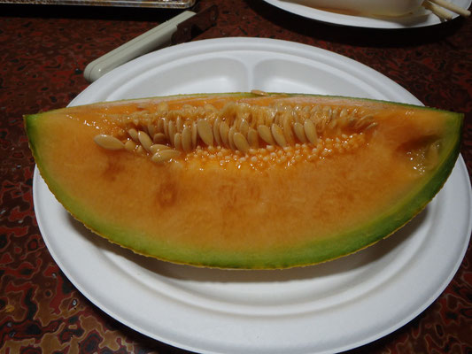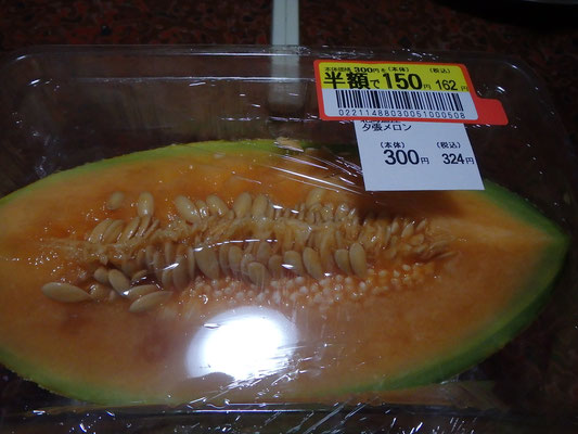 スーパーで買った夕張メロン。1/4カットがタイムセールで150円。