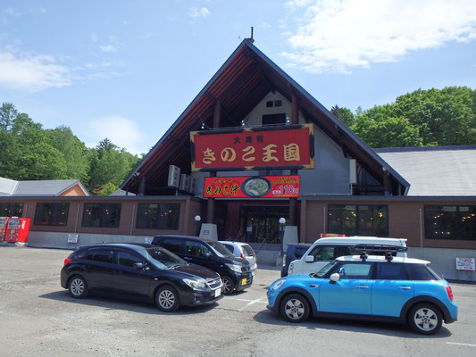 峠道にあった「きのこ王国」でキノコ汁を食する。
