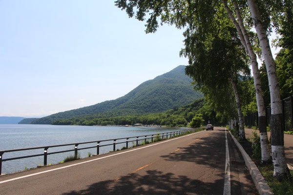 噴火湾沿いの道をゴキゲンにドライブ。牛乳が美味い。